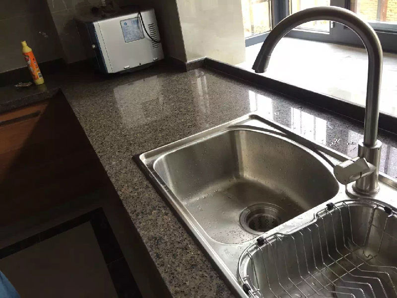 防污染:蒂羅寶石英石是在真空條件下制造的表里如一、致密無孔的復合材料,其石英表面對廚房的酸堿等有極好的抗腐蝕能力,日常使用的液體物質不會滲透其內部。